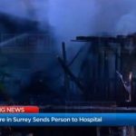 (现场图片-Global电视台图片)据Global电视台报道,素里市103街附近128 Avenue一间房屋于8月7日星期一清晨4时45分左右发生火警,一人送院,九名住客要疏散。 消防接报到场后发现,建筑物后面位置涌出大量火焰和浓烟,消防期后扑熄火势,但房屋已完全焚毁。房屋有安装烟雾警报器,火警发生时没有运作,是由一名住客嗅到有浓烟才报警。素里市消防局长表示,部份宠物也寻回,但其余就未被发现,相信已死亡。V06