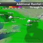 据Weather Network新闻报道,安省东部从今天到周二黎明之前将共有100毫米的降水,预计会有新一轮的水渍。周一上午的雷暴已经导致Kingston地等区有将近50毫米的降水,但是降水还没有停止,预计今天下午至周二黎明还会有一轮强降水,达到连续降水100毫米。加拿大环境部预计有地区降水总量甚至将达到125厘米,尤其是St. Lawrence河谷地区。C09