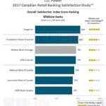 图:J.D Power根据市场信息服务公司J.D. Power的一份关于加拿大银行的满意度调查显示,银行擅自多收取服务费会造成民众很大的反感,尤其是对现有的免费服务收取费用会让消费者的满意程度大大下降。另外,让消费者心理印象分数大大加分也在于消费者进门时的招呼,若有服务人员亲切的和消费者打招呼,那么顿时对银行的形象会大幅提升。这个调查的结果也许要让你跌破眼镜了,能喊的大型银行例如TD.RBC.或是CIBC都不是大家心中的第一名,第一名为Tangerine Bank也是连续六年在同类调查中稳居第一。其他大型银行排名为RBC,TD,再来为CIBC。C08