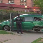 发生撞车的汽车(视频截图)据CP24报道,周六下午,多伦多Briar-Hill-Belgravia地区发生一起持枪抢车案,警方正在调查。警方说,嫌犯驾驶一辆绿色Ford Focus,在Playfair 交 Marianfield Avenues附近发生撞车。他从车里出来后,持枪指向欲走过来帮助他的人们。一名目击者说,他听到嫌犯大叫:站住别动。这名嫌犯随后持枪抢劫了一名女子的汽车,驾驶这辆minivan逃离了现场。警方相信他的枪是一杆锯掉了枪管的猎枪。警方目前在寻找该嫌犯。他据描述为20多岁黑人男子,瘦,高6英呎1,头发编辫,穿红色‘Bautista’ Blue Jays运动衫。被抢汽车为Dodge Caravan,车牌号BVYP 766。目前不清楚发生撞车的汽车是嫌犯的汽车还是被盗汽车。这辆汽车已被调查人员拖走。如有见到该嫌犯或被抢汽车者请勿靠近,马上拨打911。b01