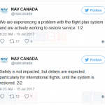 推特图据CBC报道,一个负责监管加拿大飞机控制Nav Canada称航空系统出现问题。今早Nav Canada发推称由于系统出现问题,有可能导致飞机延误,尤其是国际航班。系统具体毛病在于,原本飞机上的人员的视频和音频可自动引到控制航班工作室,但今日系统出问题无法进行引入。Nav补充这次的故障不会引发安全问题,国内航班系统运作正常,只是北太平洋的航班受影响。C04