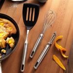 不过,不锈钢锅铲比较坚硬,如果使用不当或者锅比较脆弱,可能会造成刮痕(尤其是不粘锅)。建议挑选锅铲厚度在2mm较厚的款式,材质也尽量选择304食品级的不锈钢材质最好。