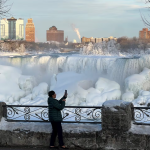 尽管气温在零下,游客仍持续前往尼亚加拉瀑布,欣赏壮观的冰层堆积。(CTV 新闻)