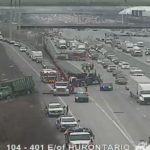 【高速車禍】泥頭車撞2私家車 401公路東行慢線封閉