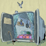 她担忧,如果她住的公寓大楼对私人开发商来说已经老旧怎么办?如果她的身体跟不上她的思考怎么办?一旦身体开始衰退,她还能住在面包车里吗?她往后还能进行20小时的长途旅行吗?在静谧的时刻,她会思考,长寿究竟是不是一种恩赐。她主要是担心,一旦身体衰退,是否还能在车里生活、或是完成长途旅行。