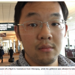 华裔男子刘清扬(Qingyang Liu,音译)声称与女友由缅省温尼辟出发,原定乘搭加拿大航空(Air Canada)飞机前往萨省沙斯卡通,但两人登机之际,职员以客机满座为由不准他上机,结果女友与二人的行李飞走了,他需改往卡加利转机,翌日才前往沙斯卡通。他不满加航做法,要求赔偿,加航则表示会调查事件。