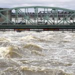 渥太华的Chaudiere 大桥,水位几乎接近桥面/加通社Justin Tang图