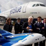 马克龙与空中巴士总裁Guillaume Faury参观。