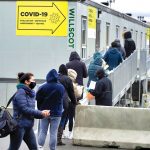 (蒙特利尔一检测中心外,不少人排队等候。 加通社)