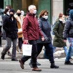 (■■魁省新增近1,000宗病例,图为在蒙特利尔街头,一些人戴了口罩。加通社)