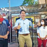 杜鲁多与竞选团队于周六前往万锦市于人村的缅街(Main Street)观光区,出席拉票活动的候选人包括寻求连任的布莱尔(Bill Blair)和伍凤仪(Mary Ng),以及首次代表自由党参选的蒋振宇(Paul Chiang)。