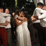 23对同性恋新人昨日在以色列首都特拉维夫集体举行“非正式婚礼”,有数百人到场庆贺。他们齐声要求政府立法,批准同性恋者合法结婚,让他们享有和异性恋者平等的法律地位。穿上礼服和婚纱的新人一对一对步进会场,交换誓词和戒指,又在宴会上一起跳舞。嘉宾们喝采欢呼。