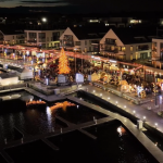 您可以在闪烁的灯光下漫步,一边欣赏水景,一边在装满礼物和零食的小木屋风格的小屋中购物。