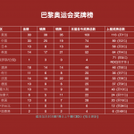 巴黎奥运会奖牌榜(8月9日)