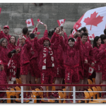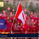 带领加拿大队出征的旗手是短跑运动员安德烈·德·格拉斯 (Andre De Grasse) 和举重运动员莫德·查伦 (Maude Charron)——他们两人都是 2020 年东京奥运会金牌得主。
