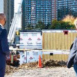 (■■联邦社会发展部长胡森(左)及多伦多市长庄德利在组合屋工地视察。Twitter)