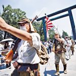 (■穿着皇军军服的游客昨天进入靖国神社。)