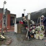 当地时间3月11日,2011年东日本大地震和海啸灾难8周年到来之际,日本多地民众纷纷前往灾区祈福默哀。图为日本福岛县民众在遇难者墓地哀悼祈祷。