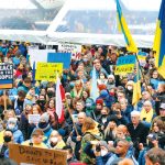 温哥华市中心数千人集会 抗议俄罗斯入侵乌克兰