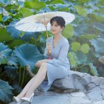66岁赵雅芝撑纸伞坐荷塘间 容貌清丽美若古画