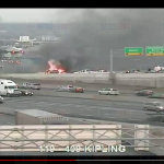 周二晚高峰,一辆越野车和另一辆车在409高速公路上发生碰撞,其中一辆车着火,导致一人死亡,一人受轻伤。